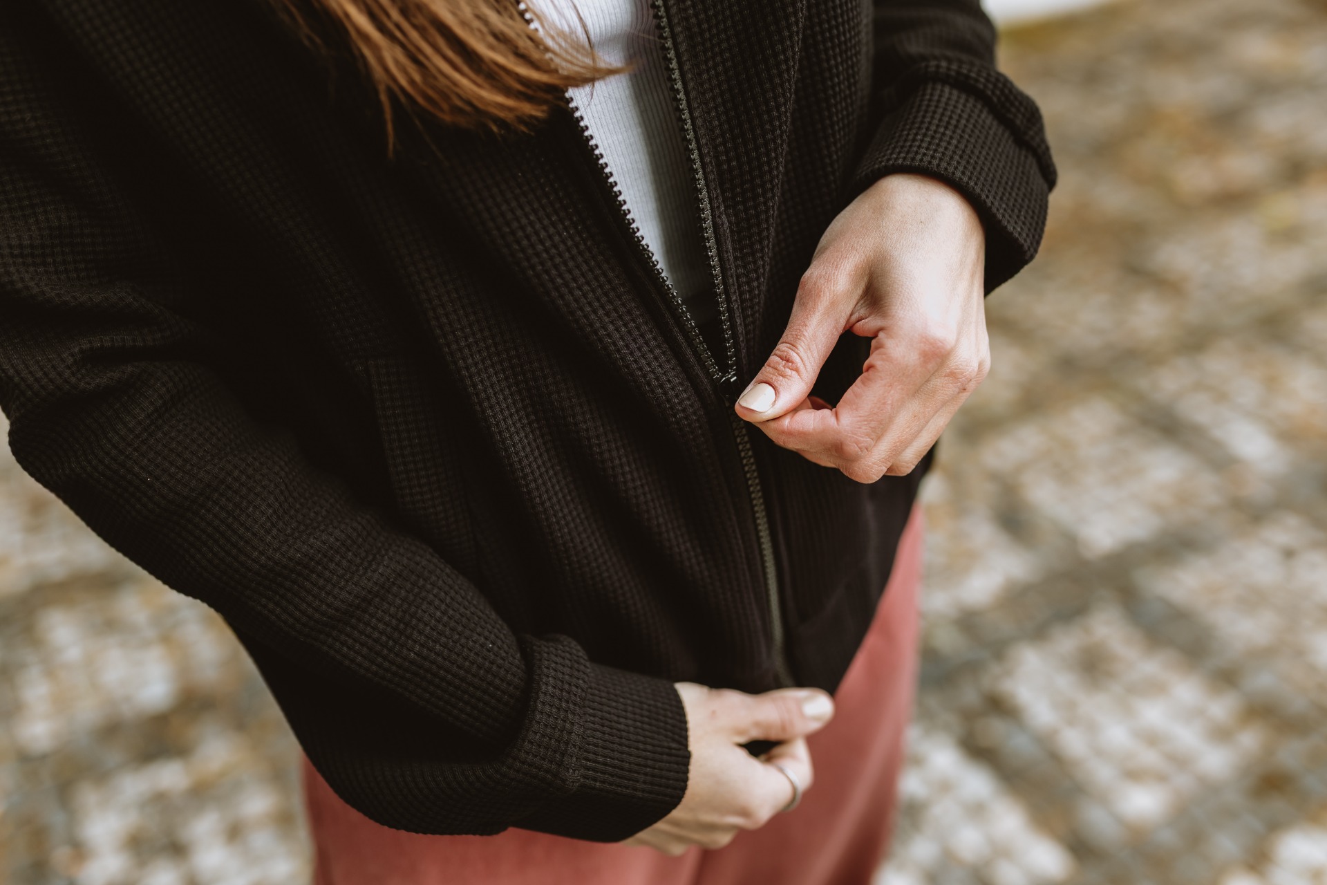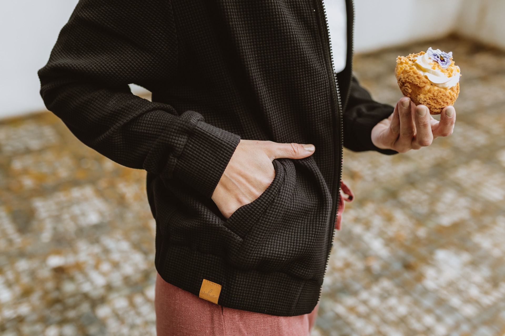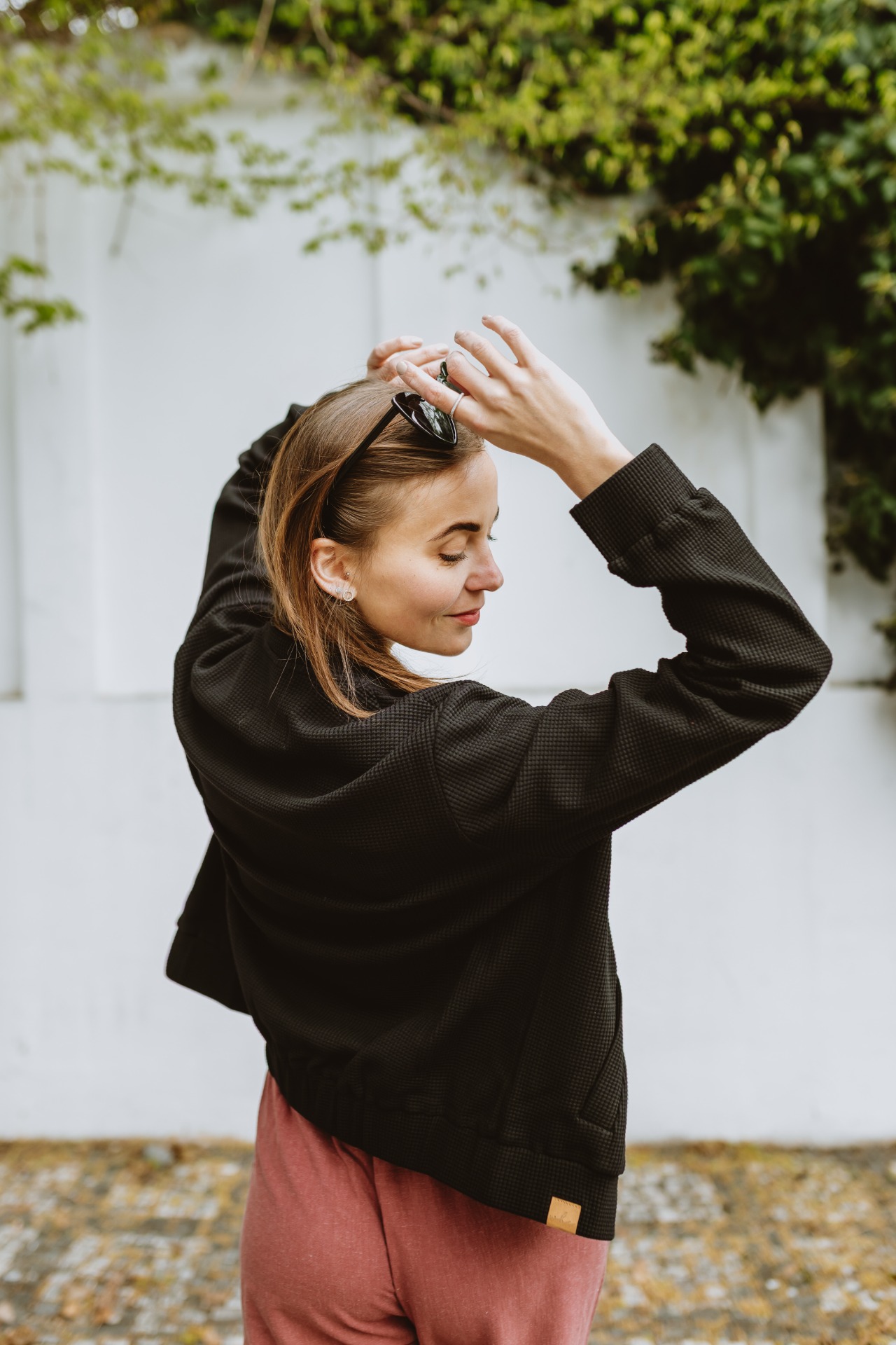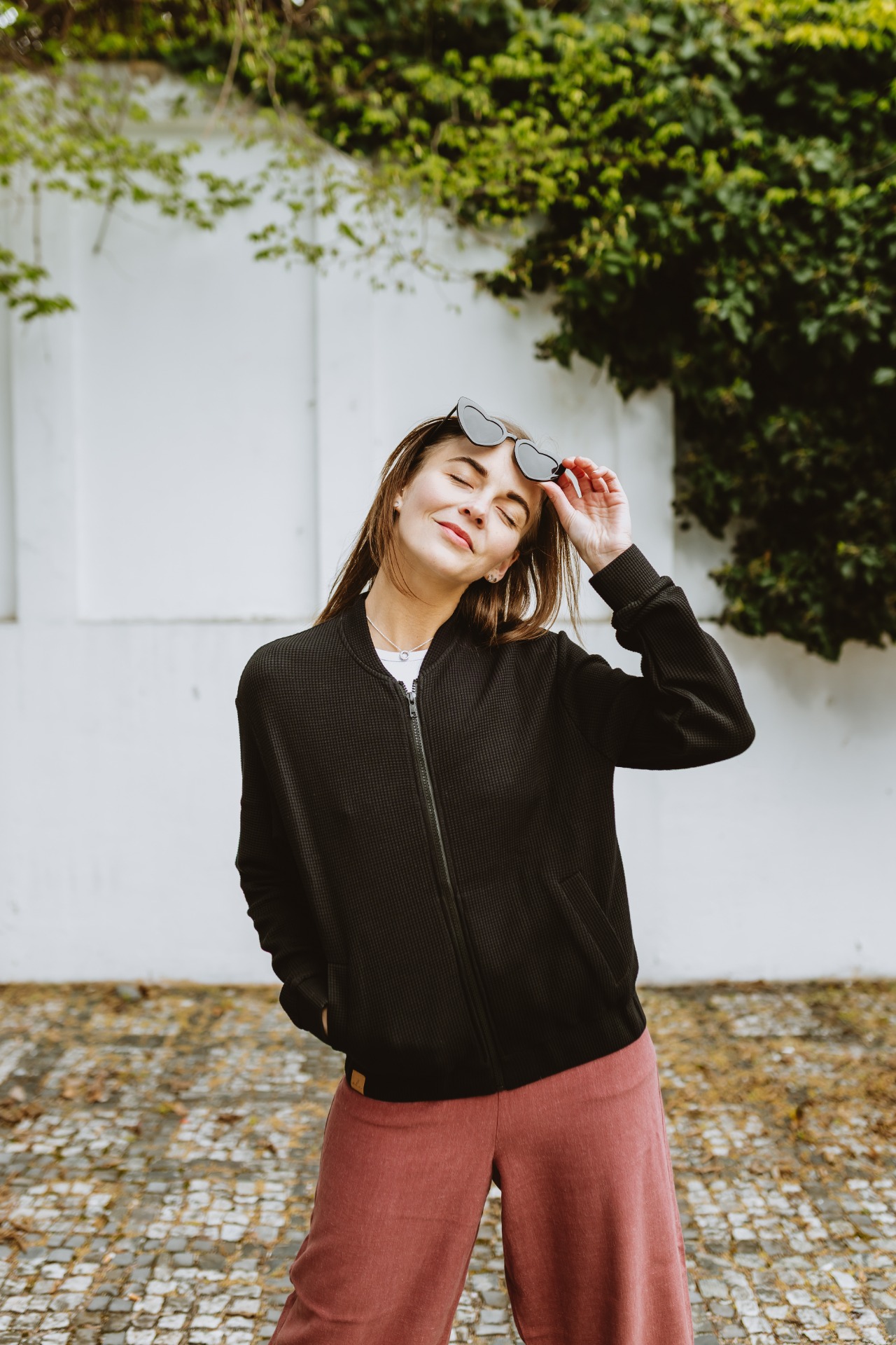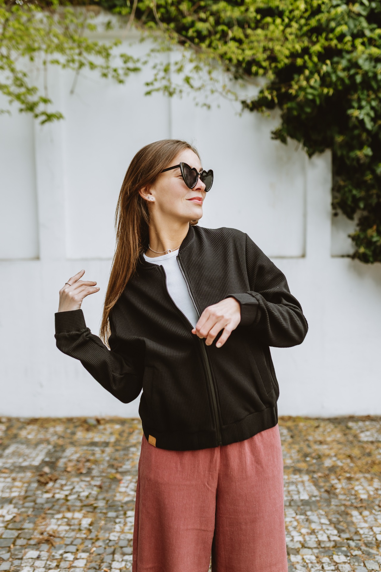 Bomber z pružného vaflového úpletu je skvělou elegantní alternativou mikiny na jarní dny i chladnější letní večery. Díky bundovému střihu působí elegantněji než běžná mikina a tak Vás směle doprovodí nejen na procházku do lesa nebo na hřiště, ale bude Vaším skvělým parťákem i na letní večerní posezení ve městě.
