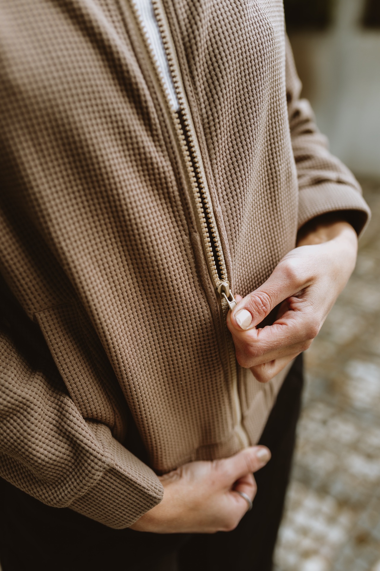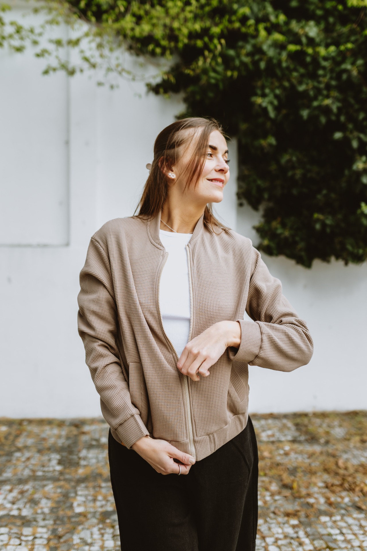 Bomber z pružného vaflového úpletu je skvělou elegantní alternativou mikiny na jarní dny i chladnější letní večery. Díky bundovému střihu působí elegantněji než běžná mikina a tak Vás směle doprovodí nejen na procházku do lesa nebo na hřiště, ale bude Vaším skvělým parťákem i na letní večerní posezení ve městě.