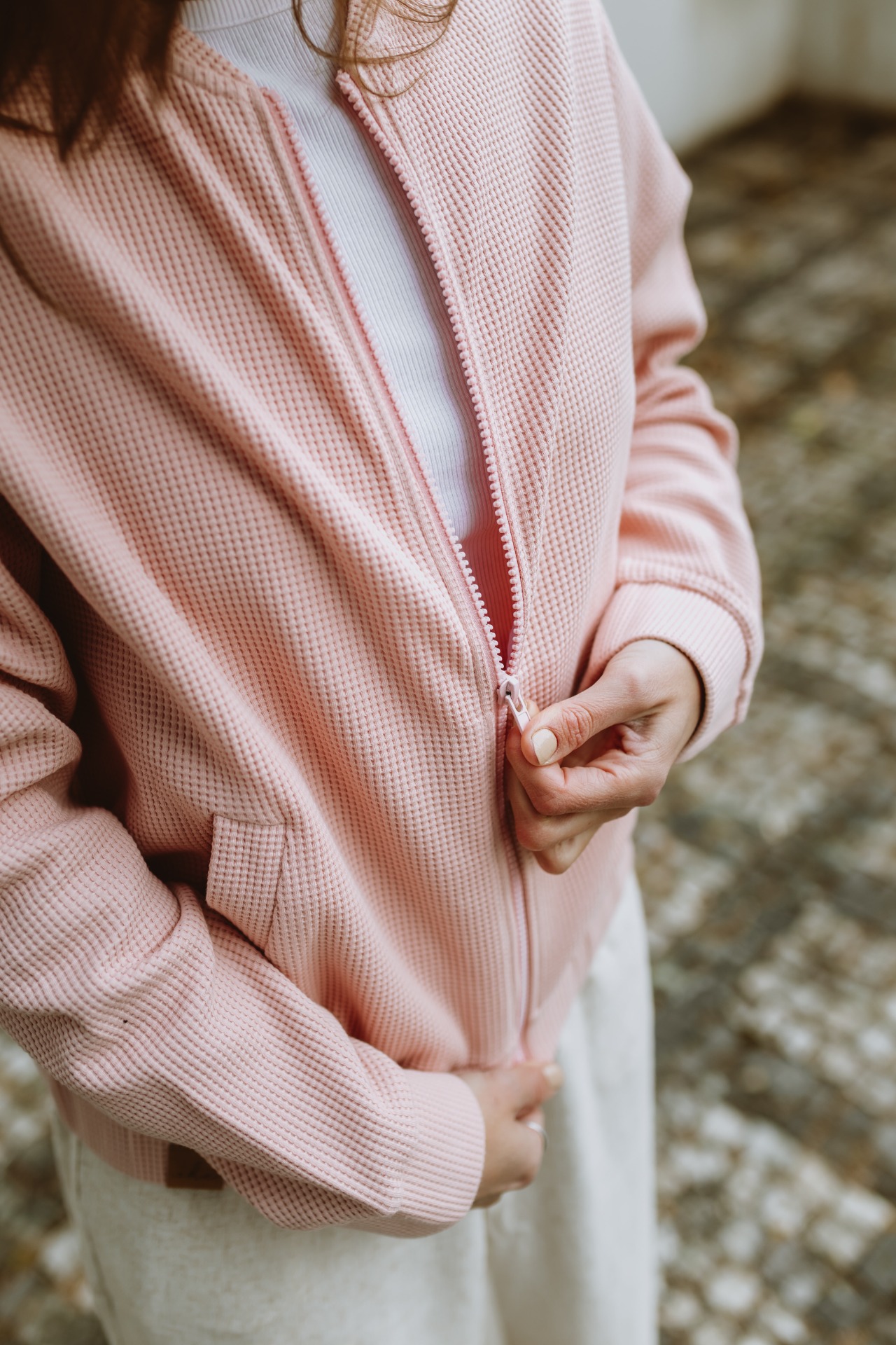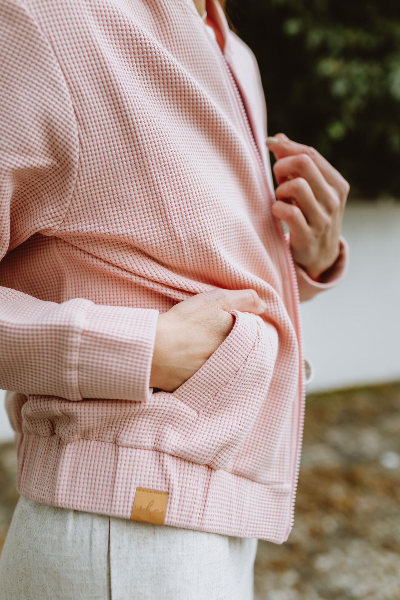 Bomber z pružného vaflového úpletu je skvělou elegantní alternativou mikiny na jarní dny i chladnější letní večery. Díky bundovému střihu působí elegantněji než běžná mikina a tak Vás směle doprovodí nejen na procházku do lesa nebo na hřiště, ale bude Vaším skvělým parťákem i na letní večerní posezení ve městě.