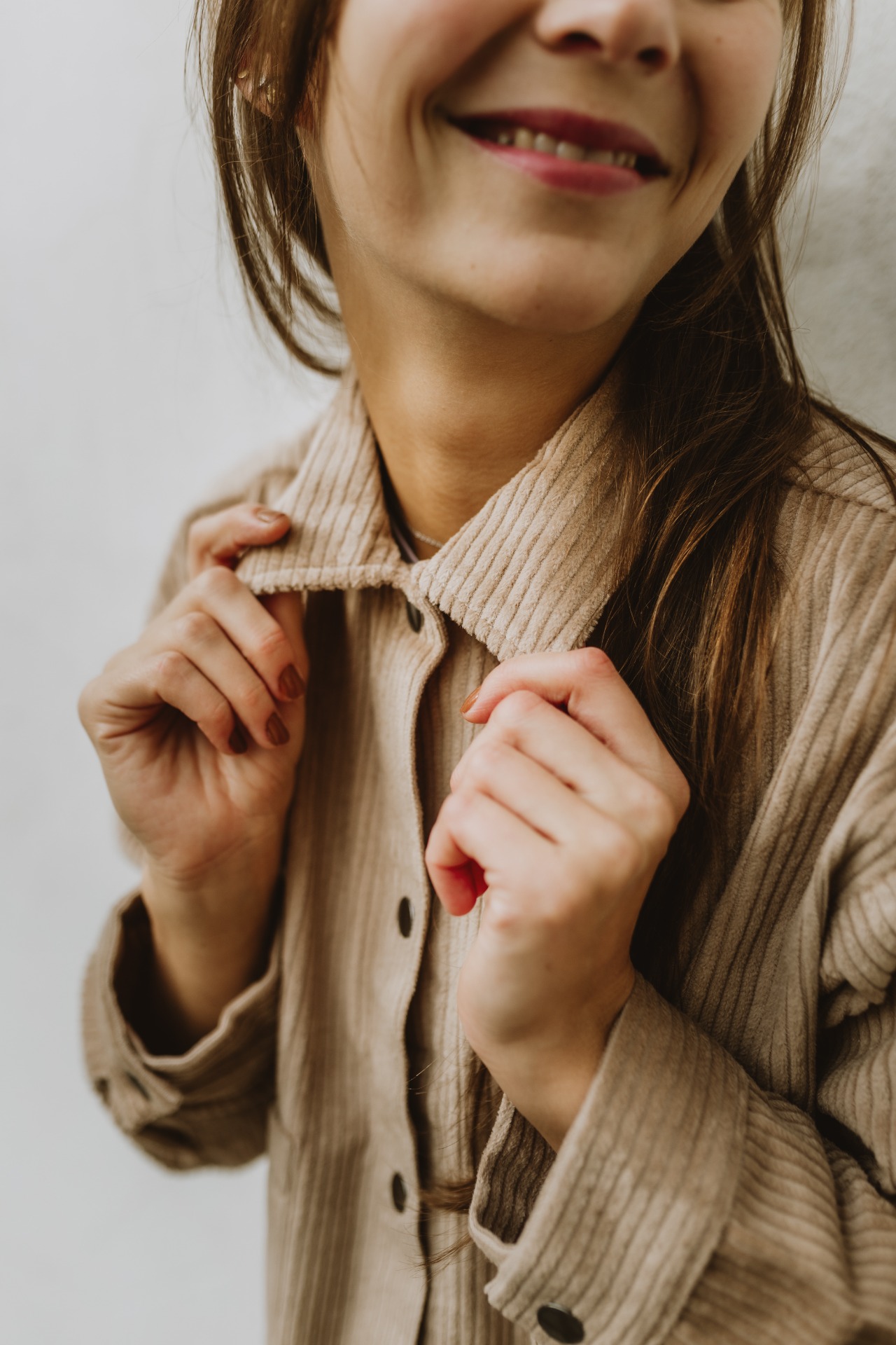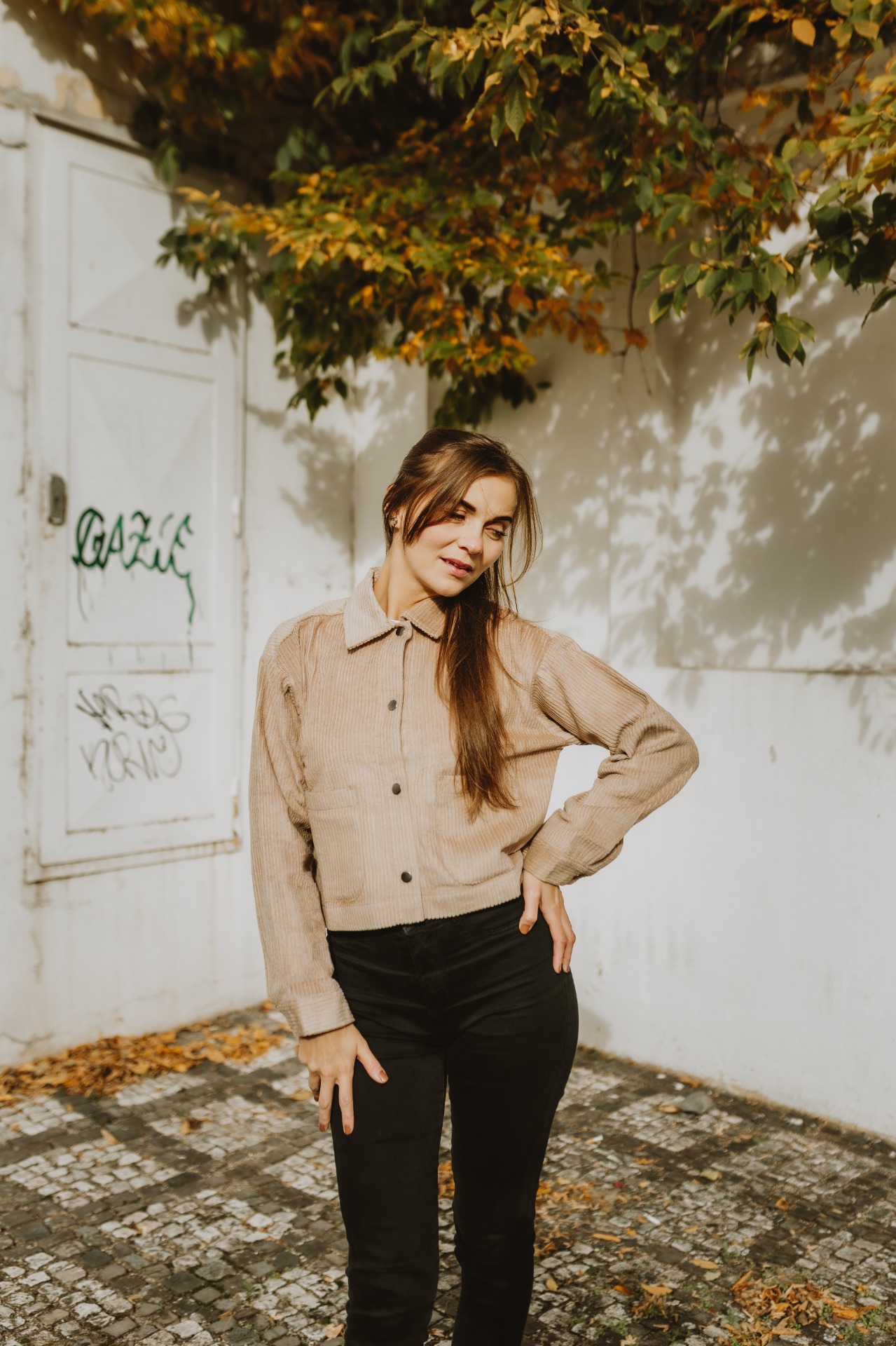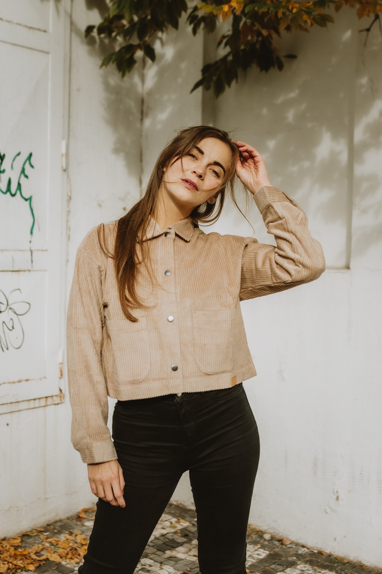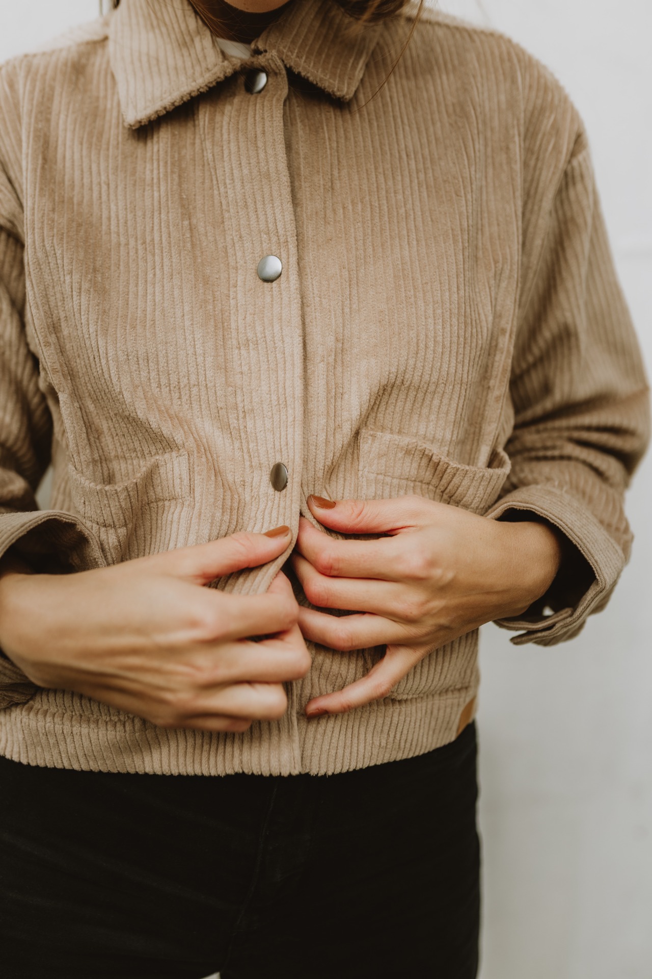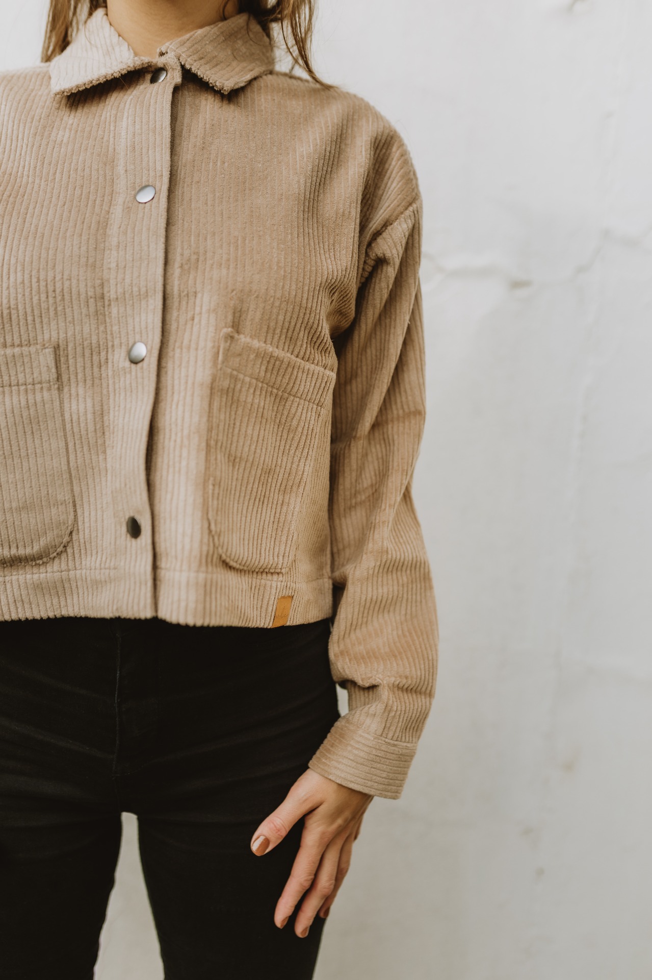 Danny - košile, kterou si oblíbíte nejen jako hřejivý svršek na podzimních či jarních procházkách, ale také jako kousek vhodný k vrstvení pod kabát nebo bundu. Díky crop strihu ji skvěle unosíte nejen ke kalhotám všeho druhu, ale i k šatům a sukním. Ušitá je, jak už je našim dobrým zvykem, z bavlněného manšestru gramáže "tak akorát", aby zahřála, ale díky přírodnímu složení ( 100 % bavlna ) skvěle propustí vzduch a je tedy, jak jsem už zmínila, skvělá k vrstvení. V přední části košile najdete kapsy na nezbytnosti a zapínání jsme i tentokrát zvolili praktické - na druky.