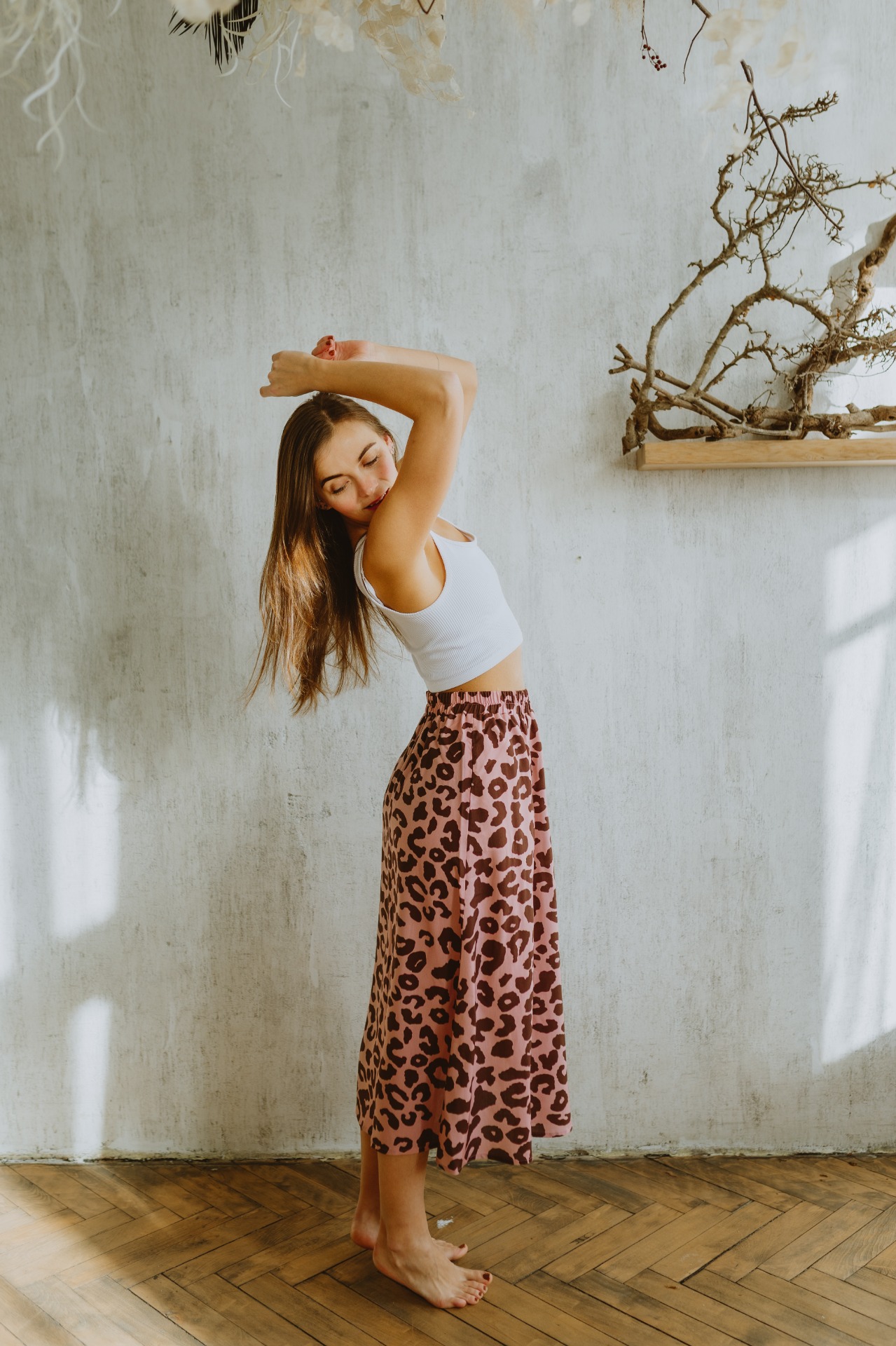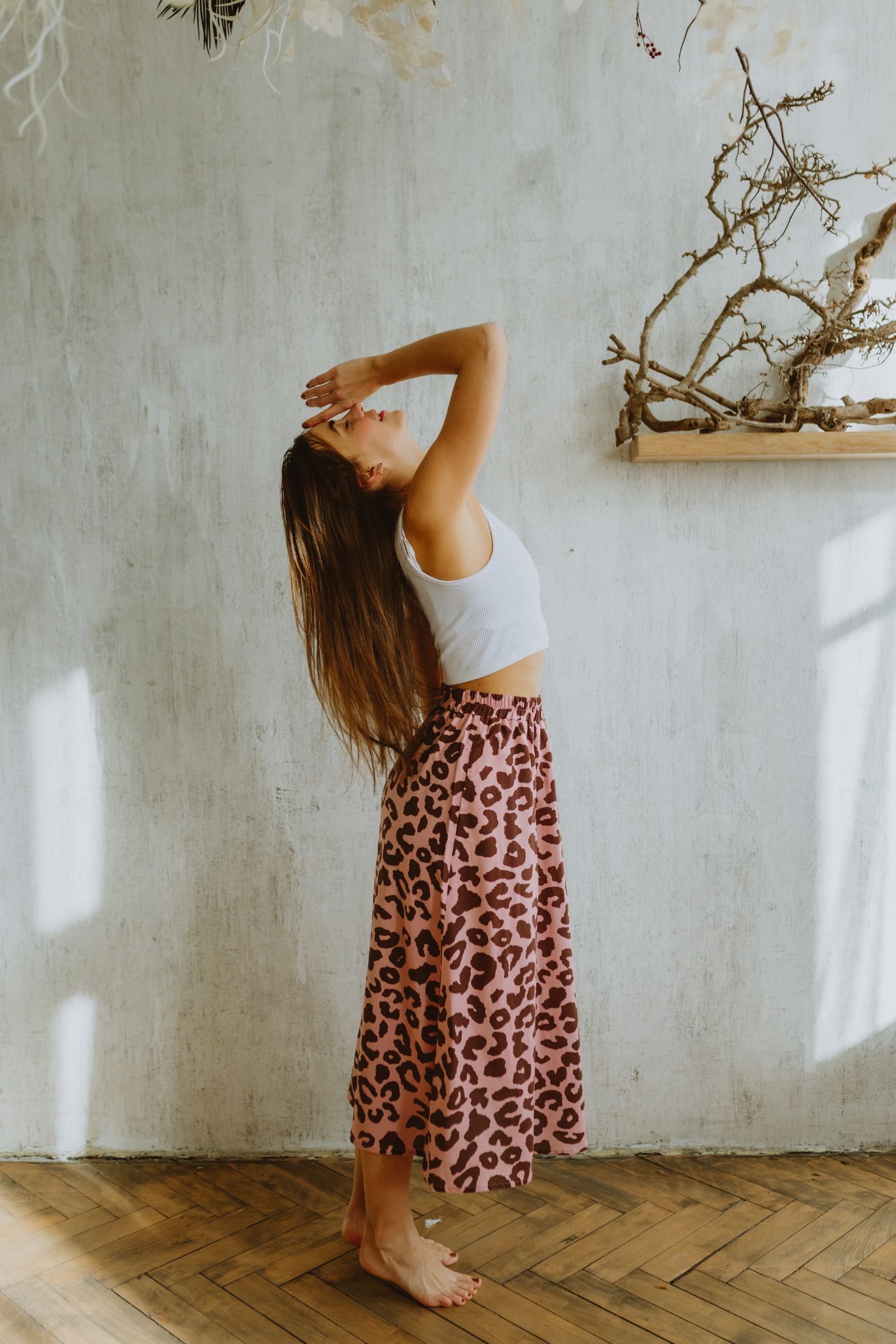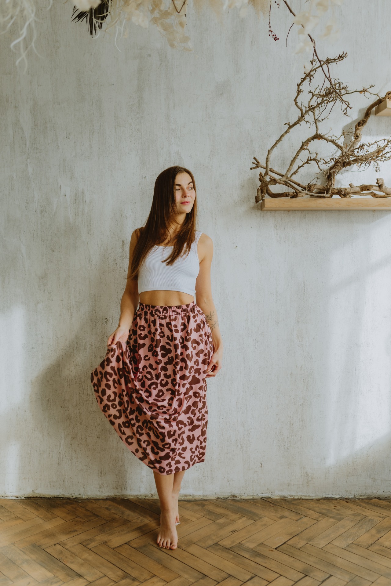 Animal print, který jsme pro jarní kolekci zvolili je prvkem, který tomuto kousku dodá na odvaze a sebevědomí. Při nošení vzorů doporučujeme držet se zásady méně je více - tedy nechat sukni hrát "hlavní roli" a zbytek outfitu zvolit v neutrálních barvách.