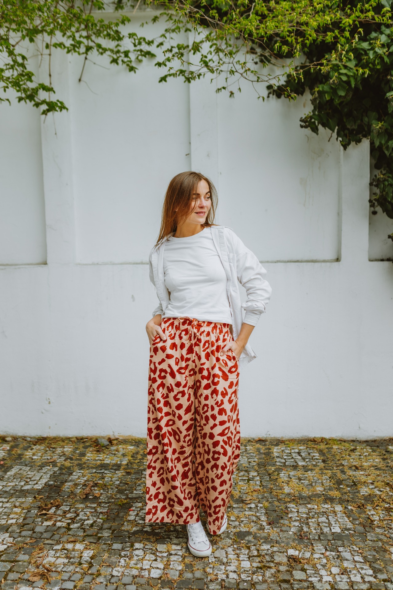S divokým vzorem jsme letos ještě nezkončili. Po sukni přichází na řadu i pár kousků kalhot Kaya se vzorem Wild. Viskoza s keprovou vazbou je lehká vzdušná a hebká jako pohlazení, to už víme. Odvážnější print dodá kalhotám jedinečný look.Je to možná maličko divočejší kousek do party, ale kdy jindy se trochu odvázat než na jaře a v létě, none?