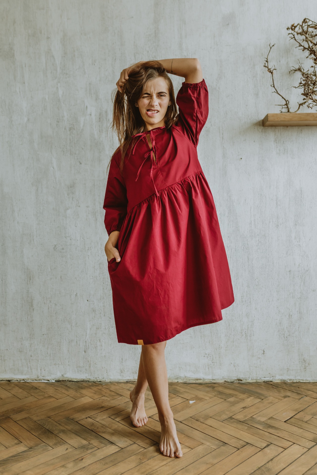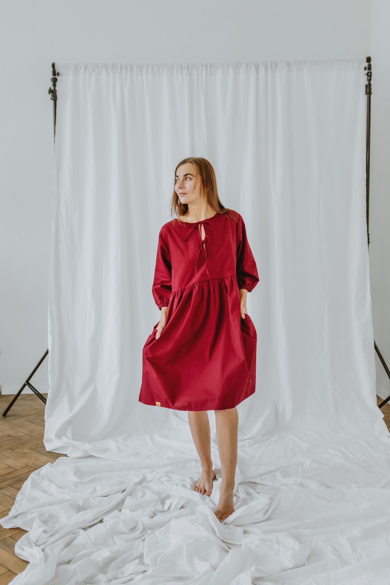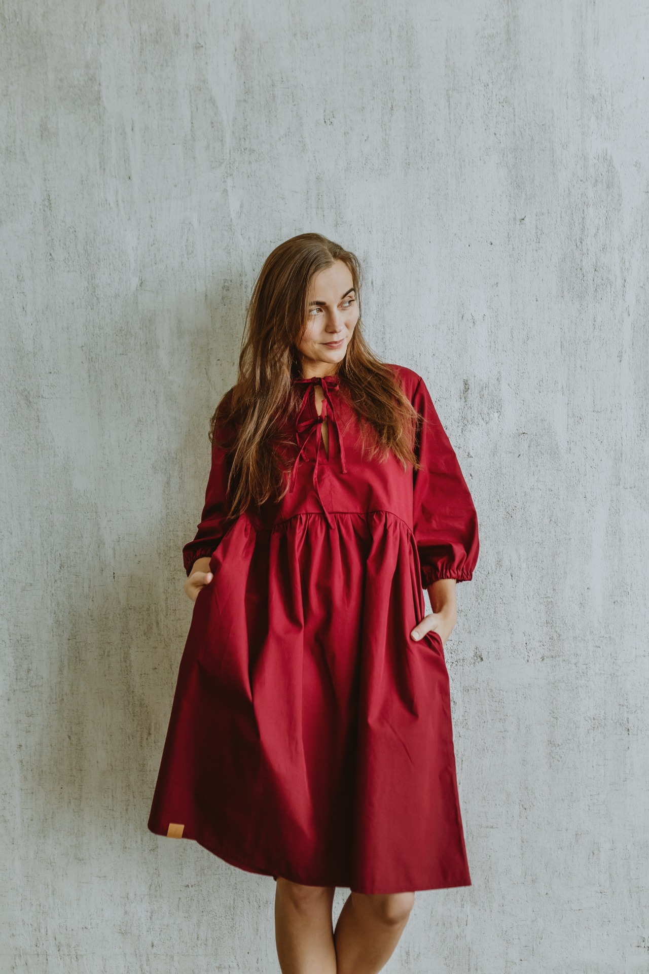 3/4 ní rukáv je díky volnějšímu střihu taktéž ještě o chlup pohodlnější a zakončený je širší a volnější gumičkou. Délku šatů Lotty jsme zvolili ke kolenům, aby nebyly příliš dlouhé, ale ani krátké a ve švu mají, jak jste už u nás zvyklí, schovanou kapsu na nezbytnosti.