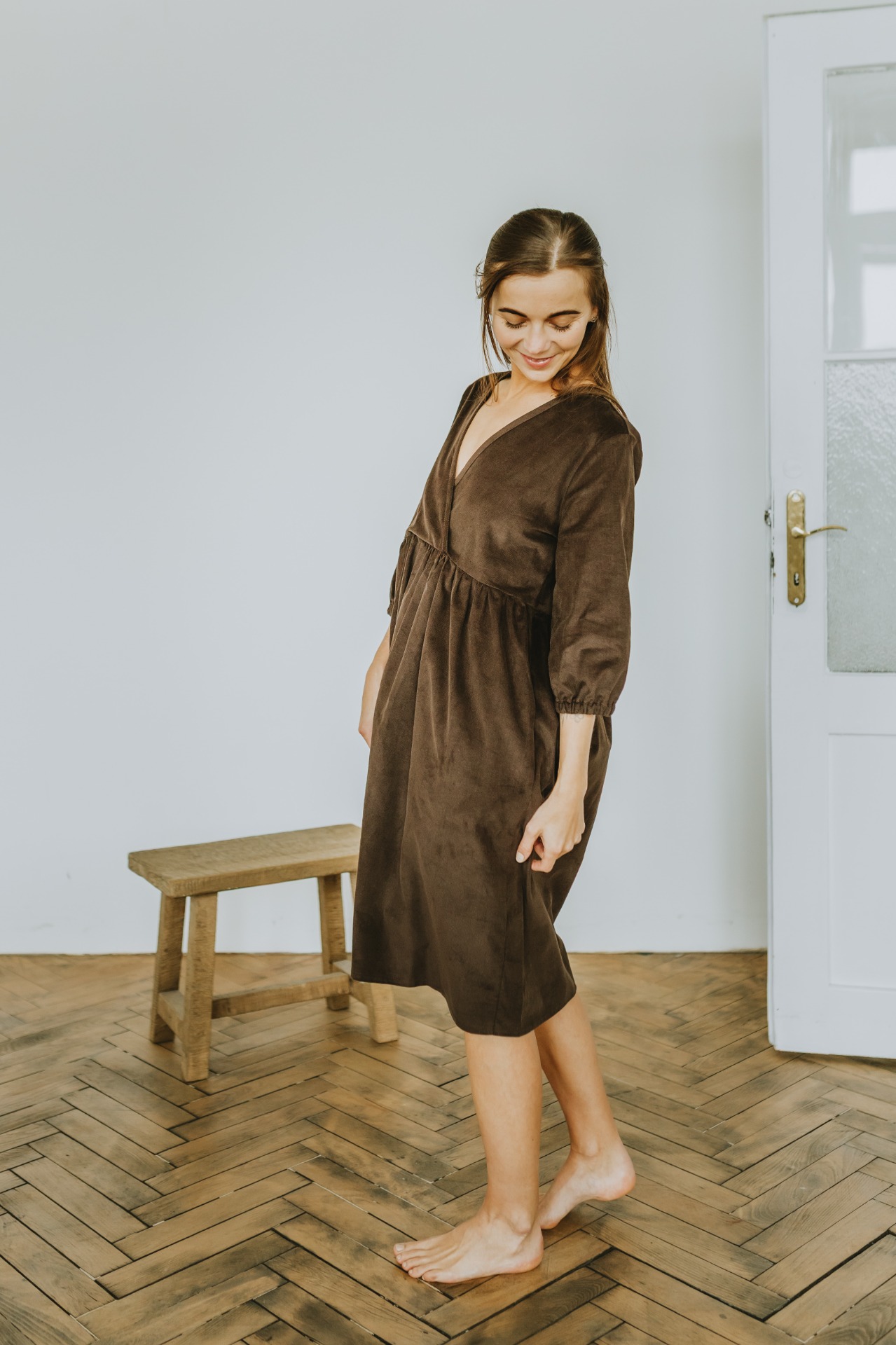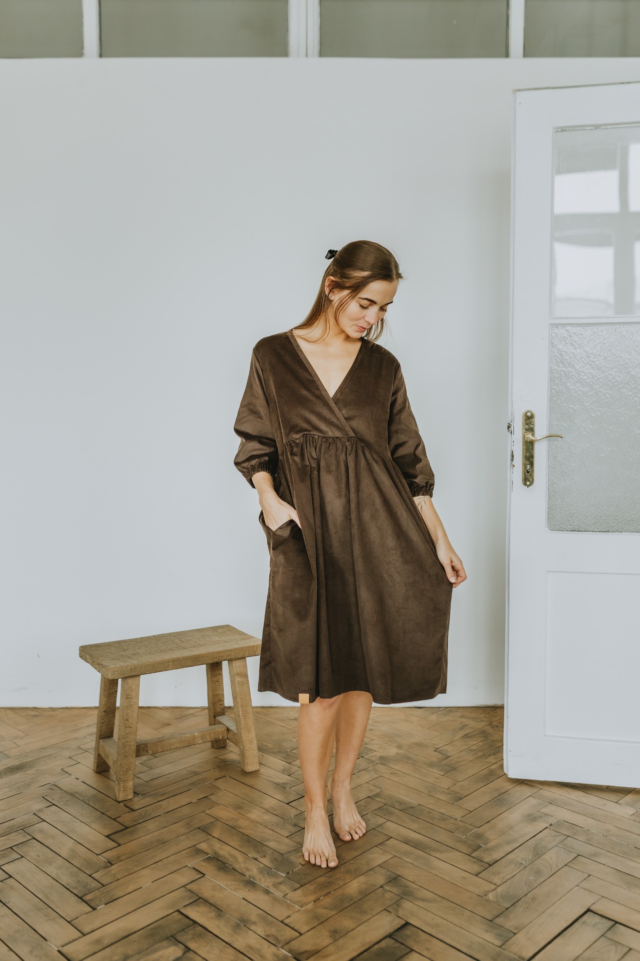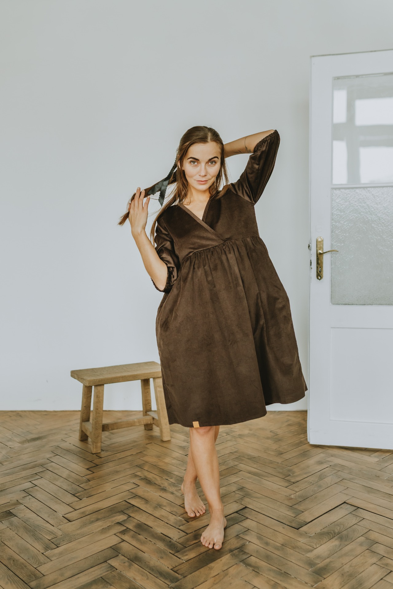 Manšestrové šaty Sally jsou sourozencem šatů Helly s maličko zkráceným a zúženým rukávem do gumičky.