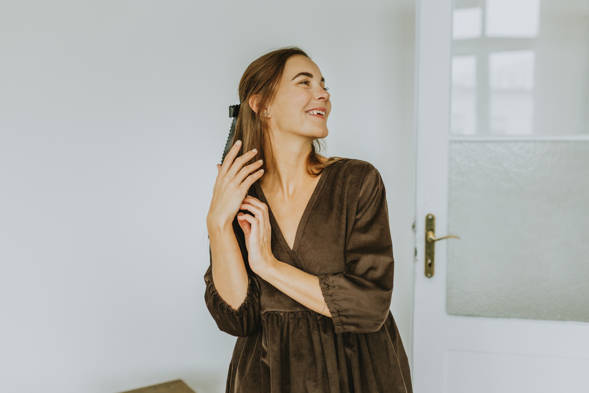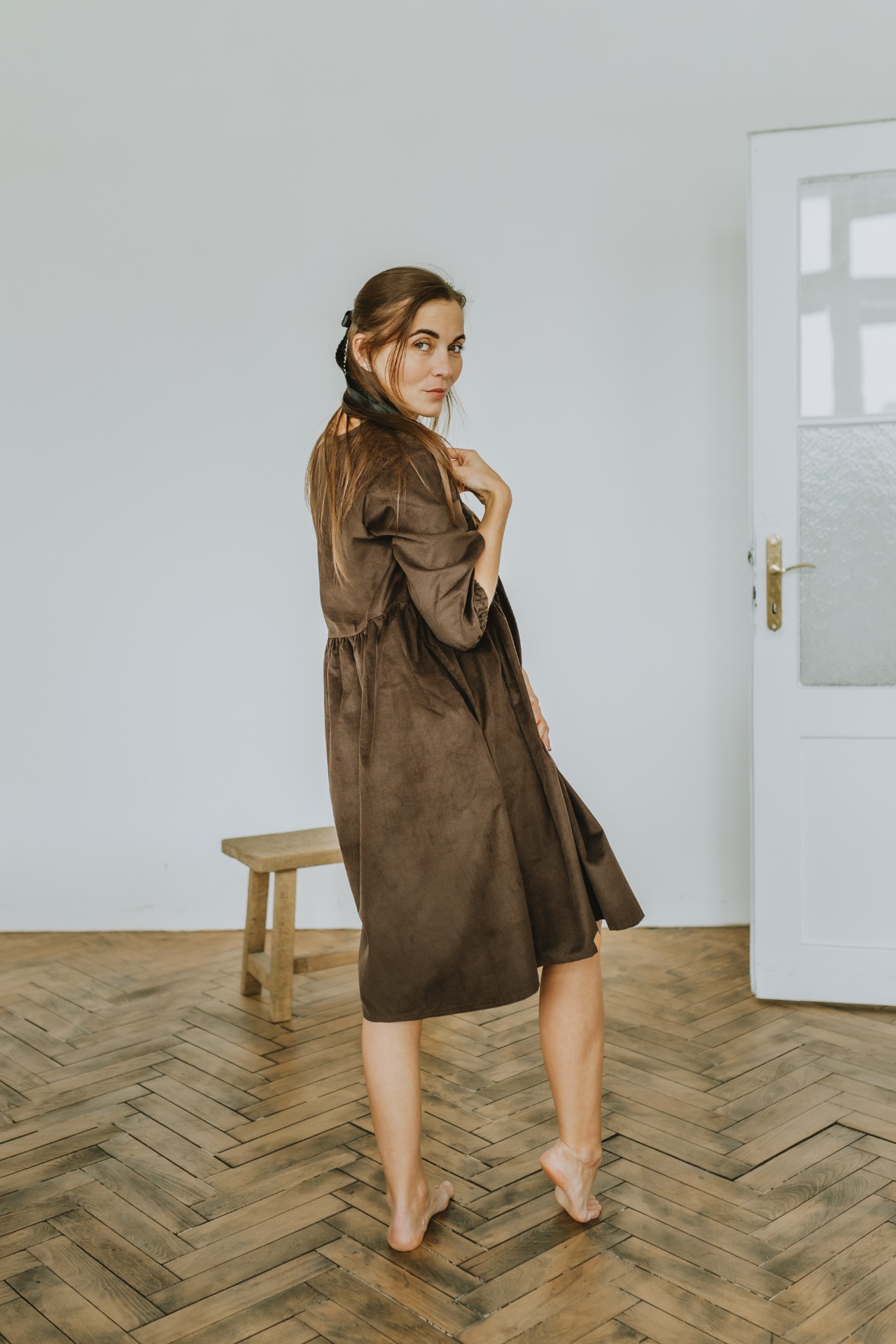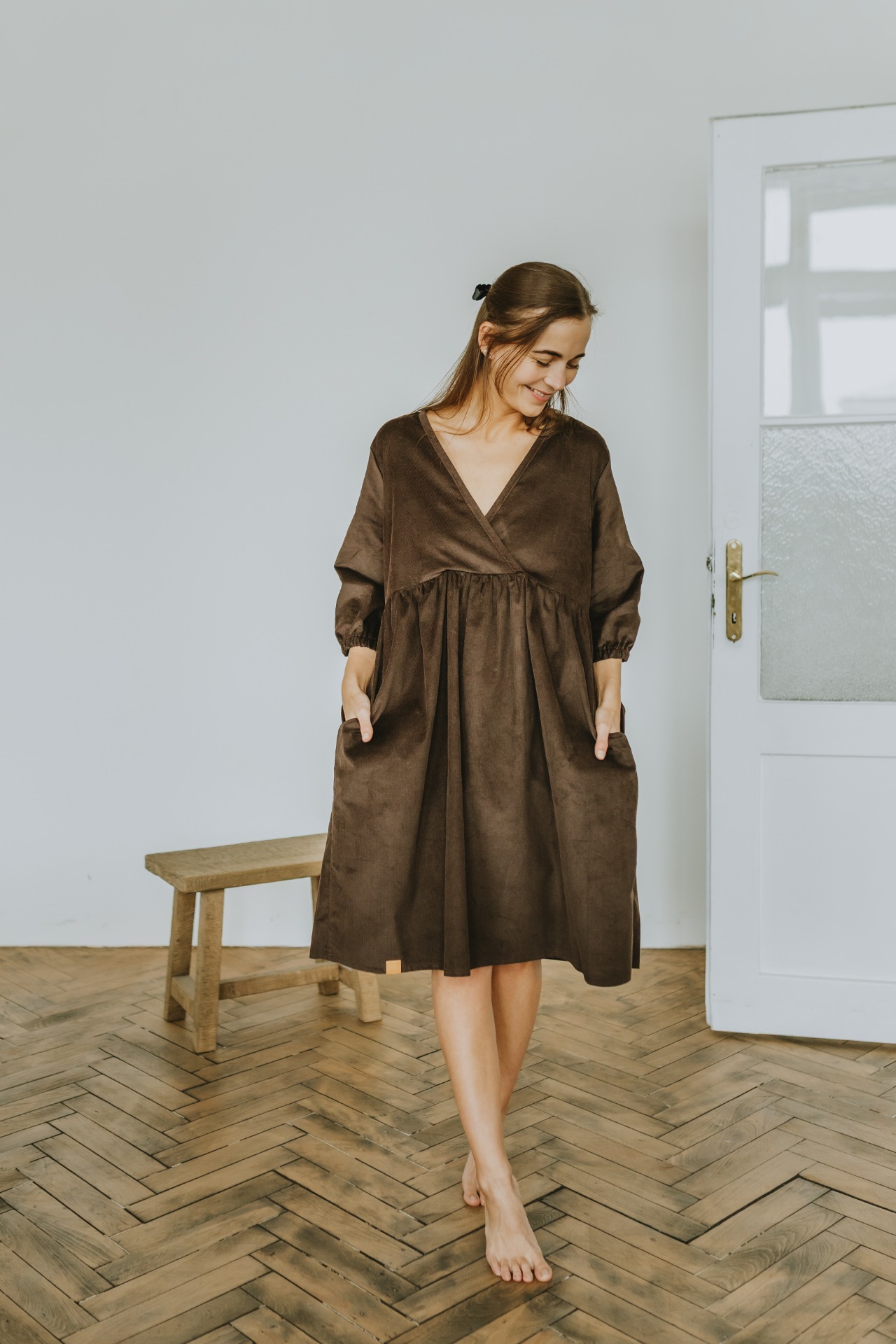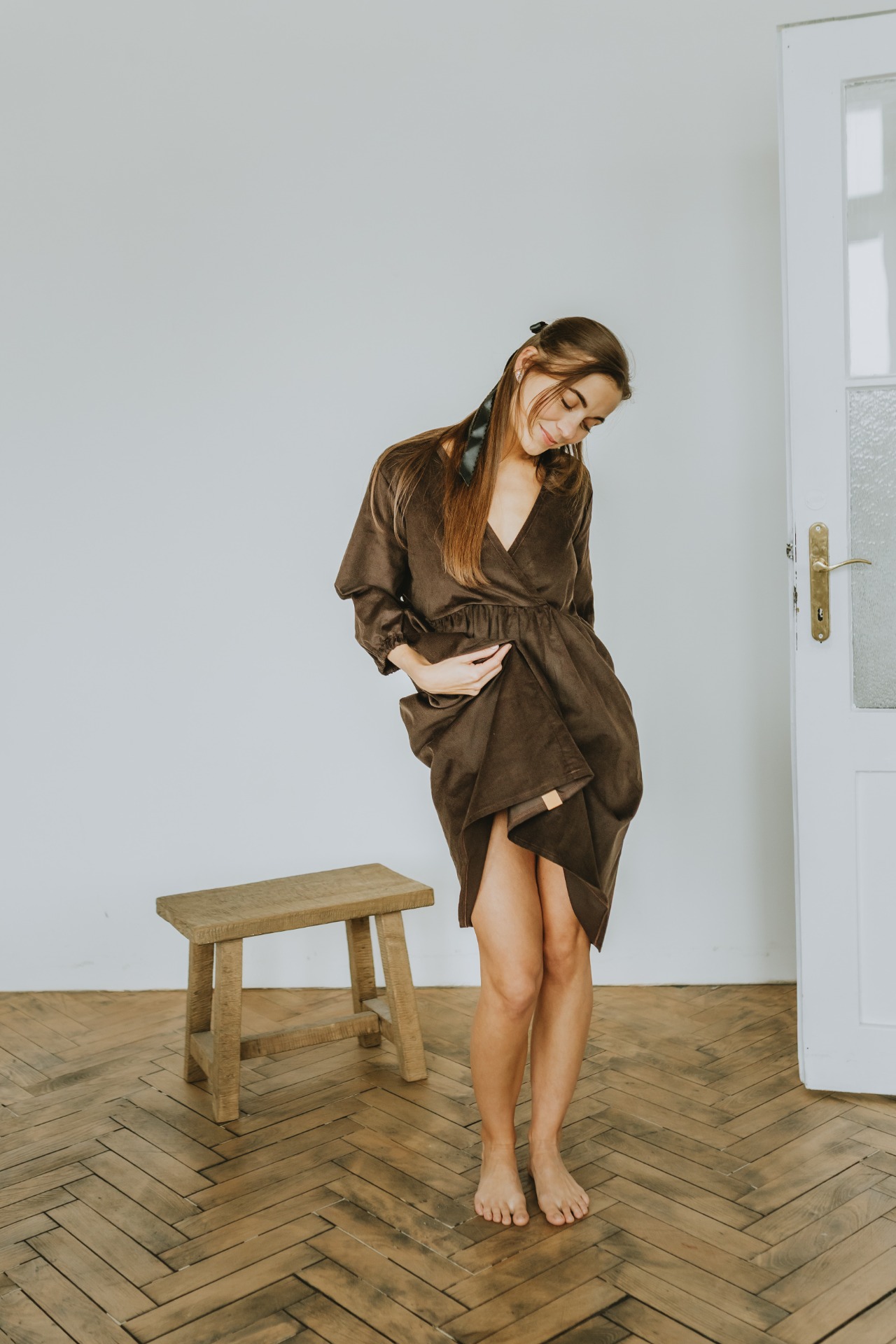 Manšestrové šaty Sally jsou sourozencem šatů Helly s maličko zkráceným a zúženým rukávem do gumičky.