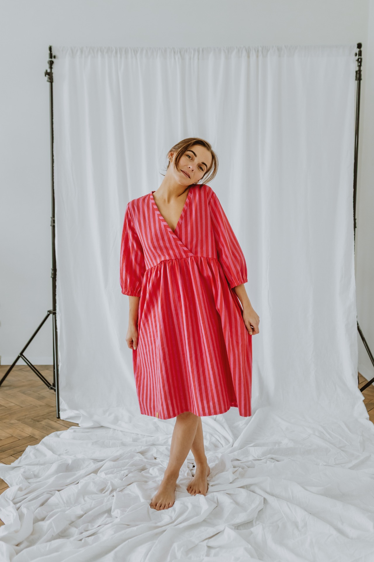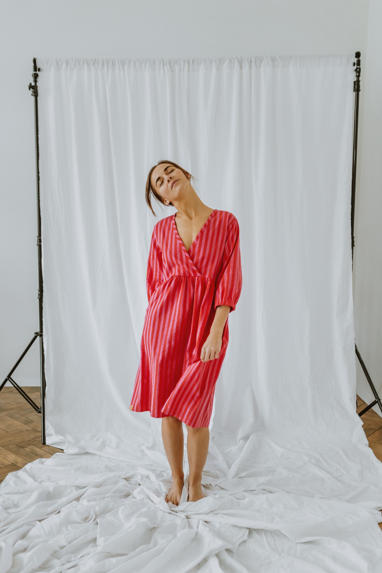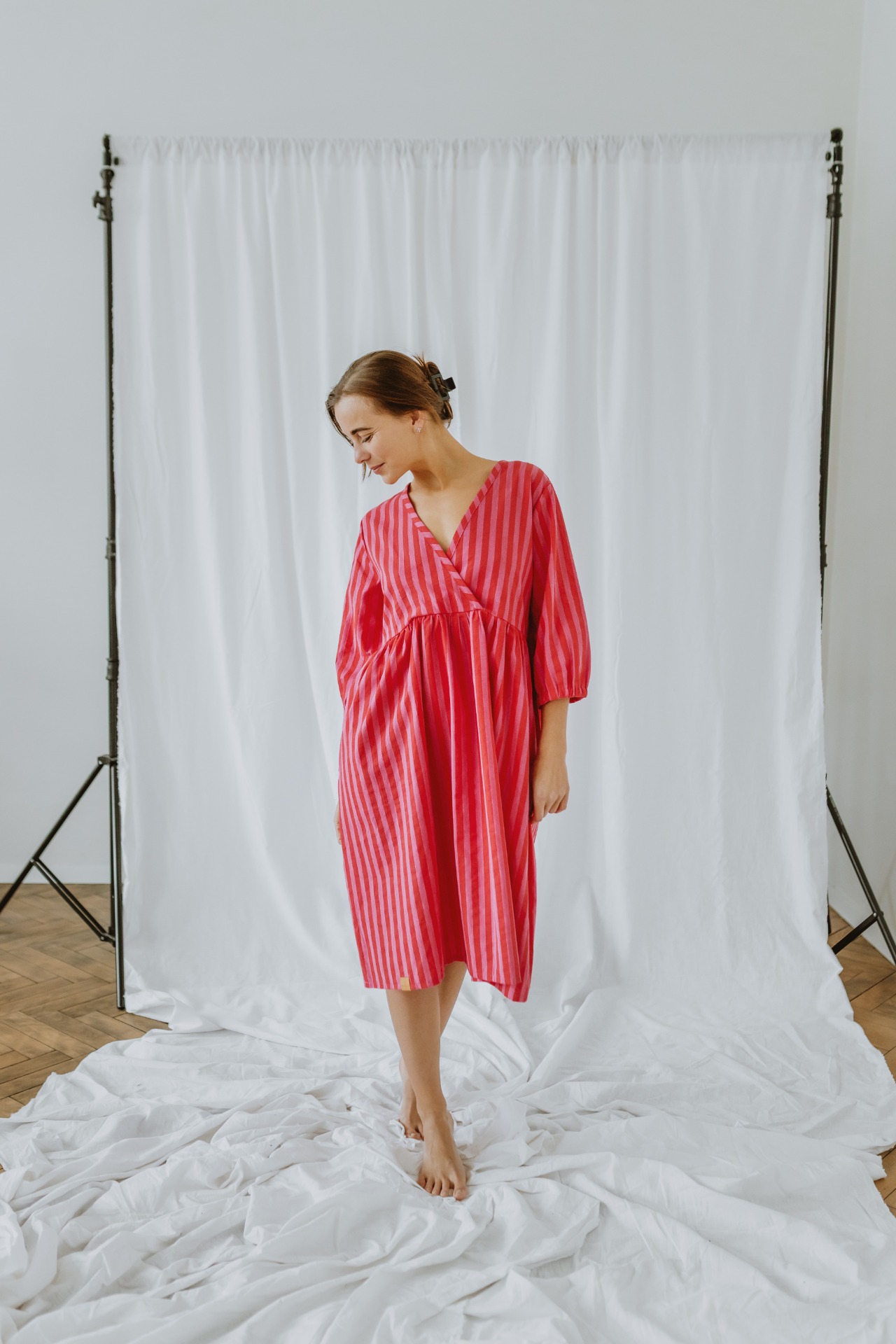Šaty nabírané v pase už v naší nabídce zdomácněly, jsou pohodlné, nadčasové, Vy je milujete a tak se k nim pravidelně vracíme, jen upravujeme jejich podobu podle aktuální nálady. U šatů Sally jsme zvolili překřížený výstřih výstřih který jaru sluší a uvítají jej jak milovnice hlubších dekoltů, tak i maminky, které v šatech mohou kojit.