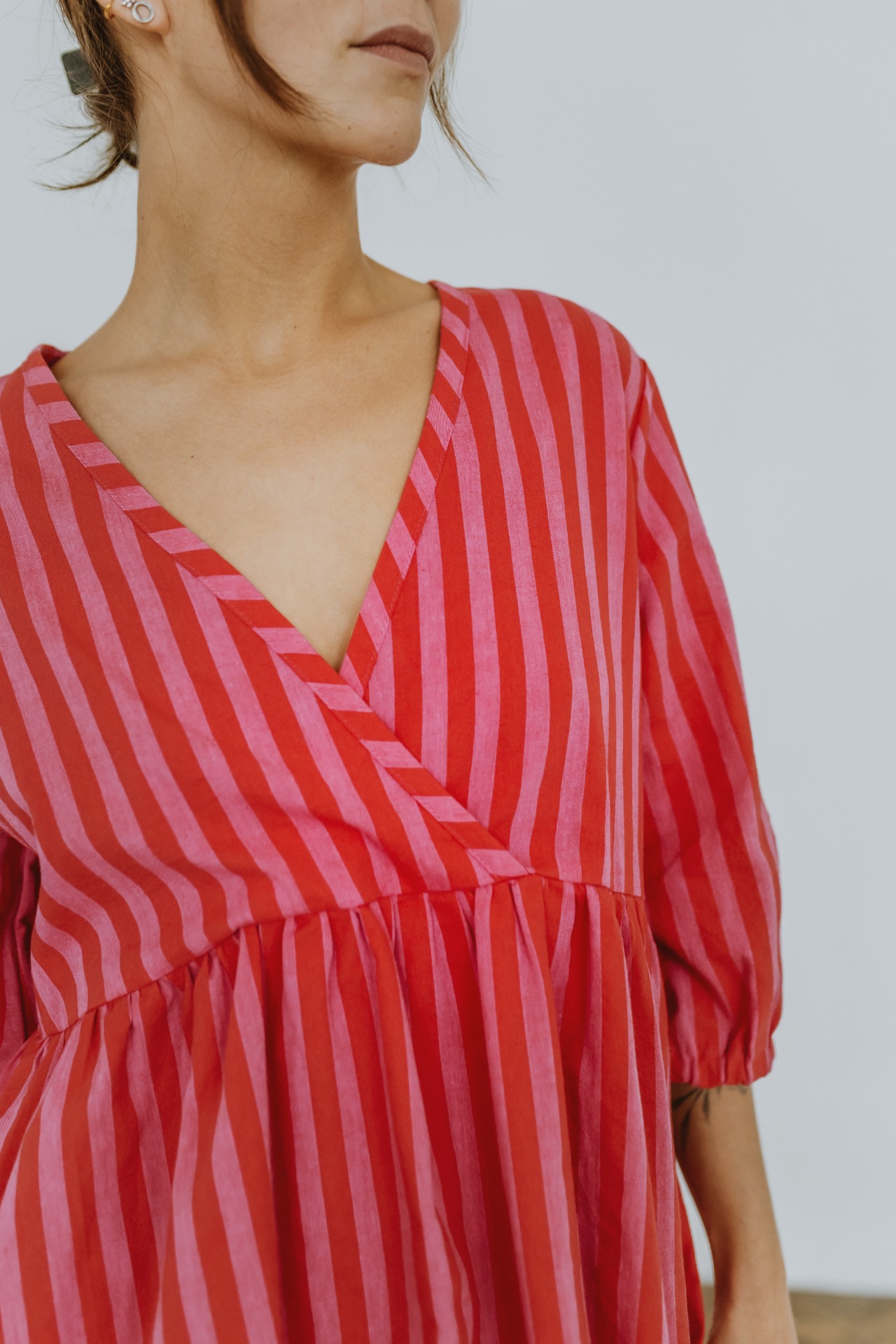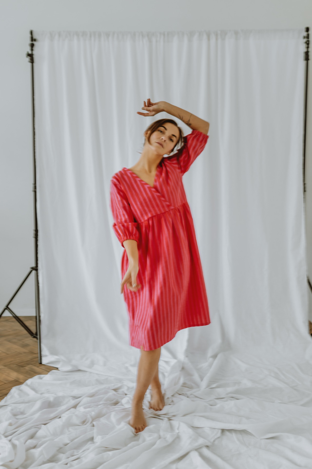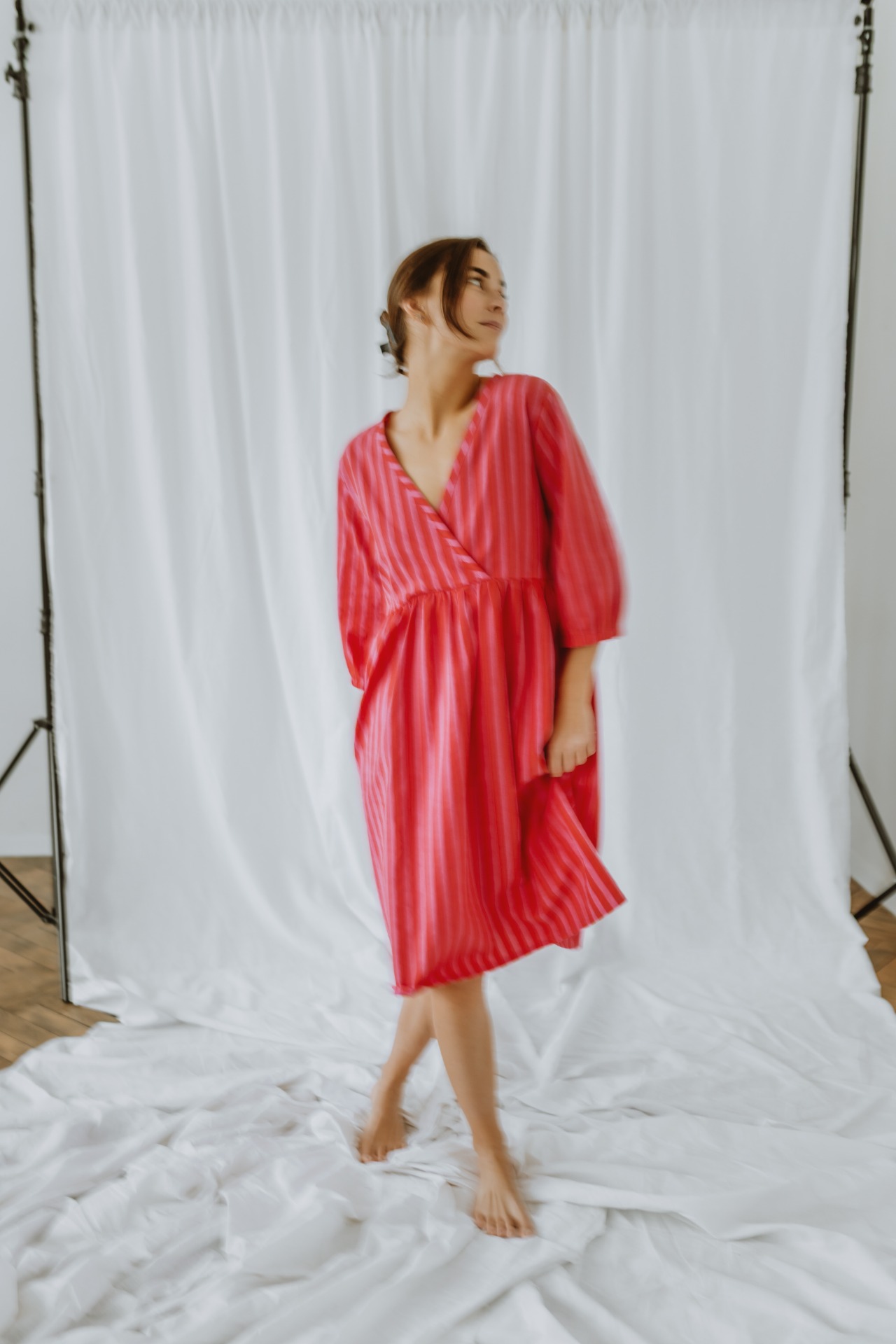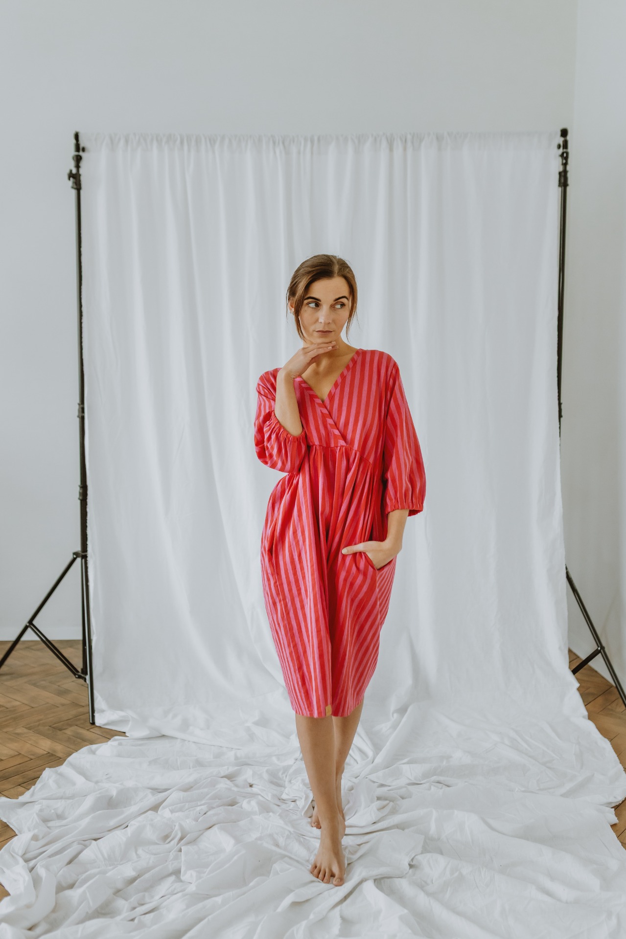 Šaty nabírané v pase už v naší nabídce zdomácněly, jsou pohodlné, nadčasové, Vy je milujete a tak se k nim pravidelně vracíme, jen upravujeme jejich podobu podle aktuální nálady. U šatů Sally jsme zvolili překřížený výstřih výstřih který jaru sluší a uvítají jej jak milovnice hlubších dekoltů, tak i maminky, které v šatech mohou kojit.