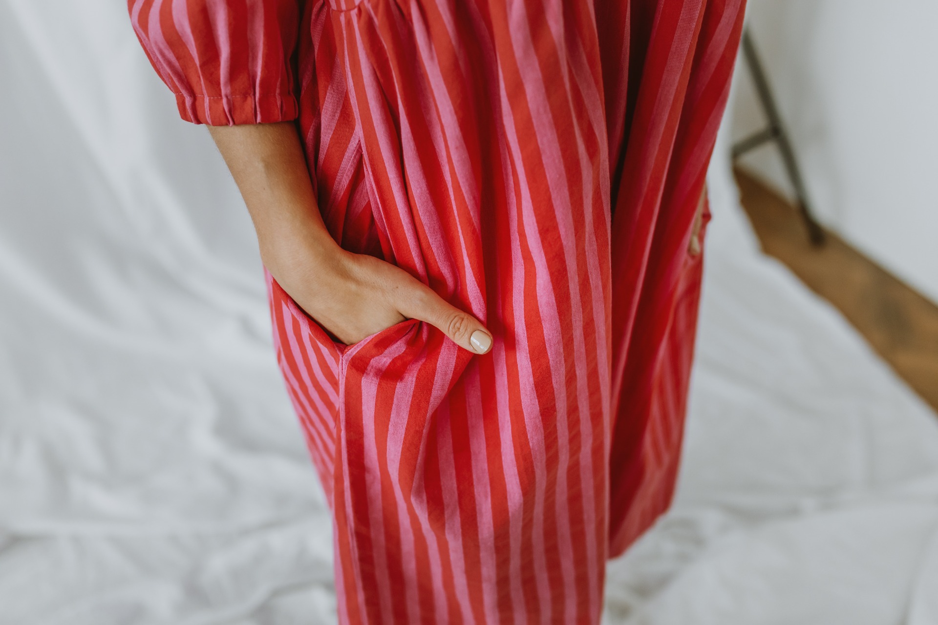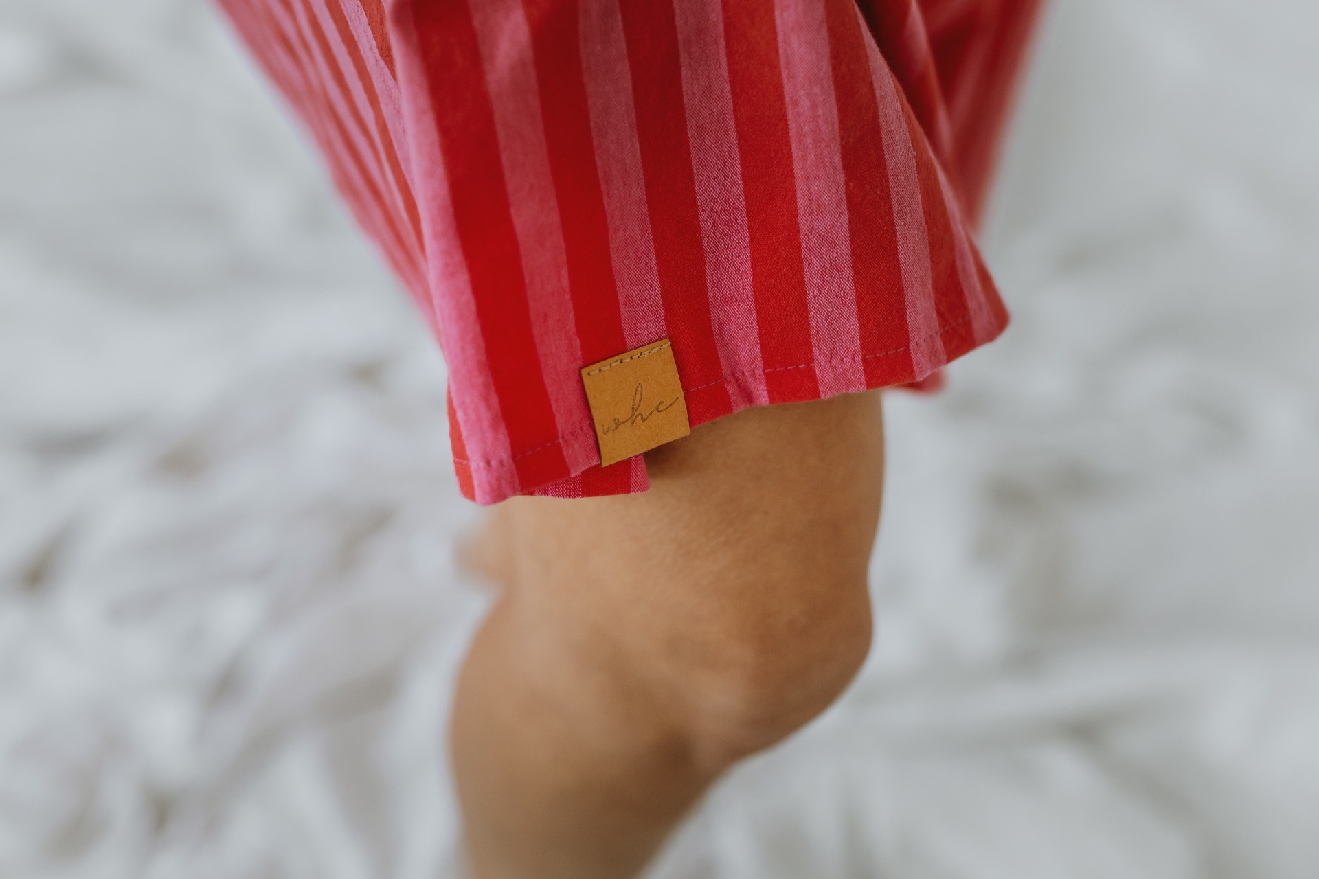 Šaty Sally jsou sourozencem šatů Helly s maličko zkráceným a zúženým rukávem do gumičky.