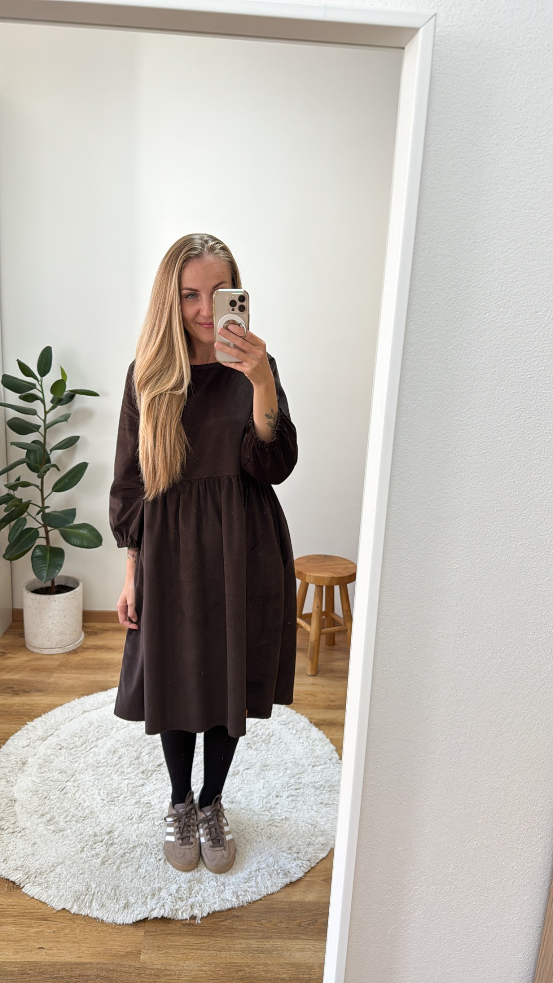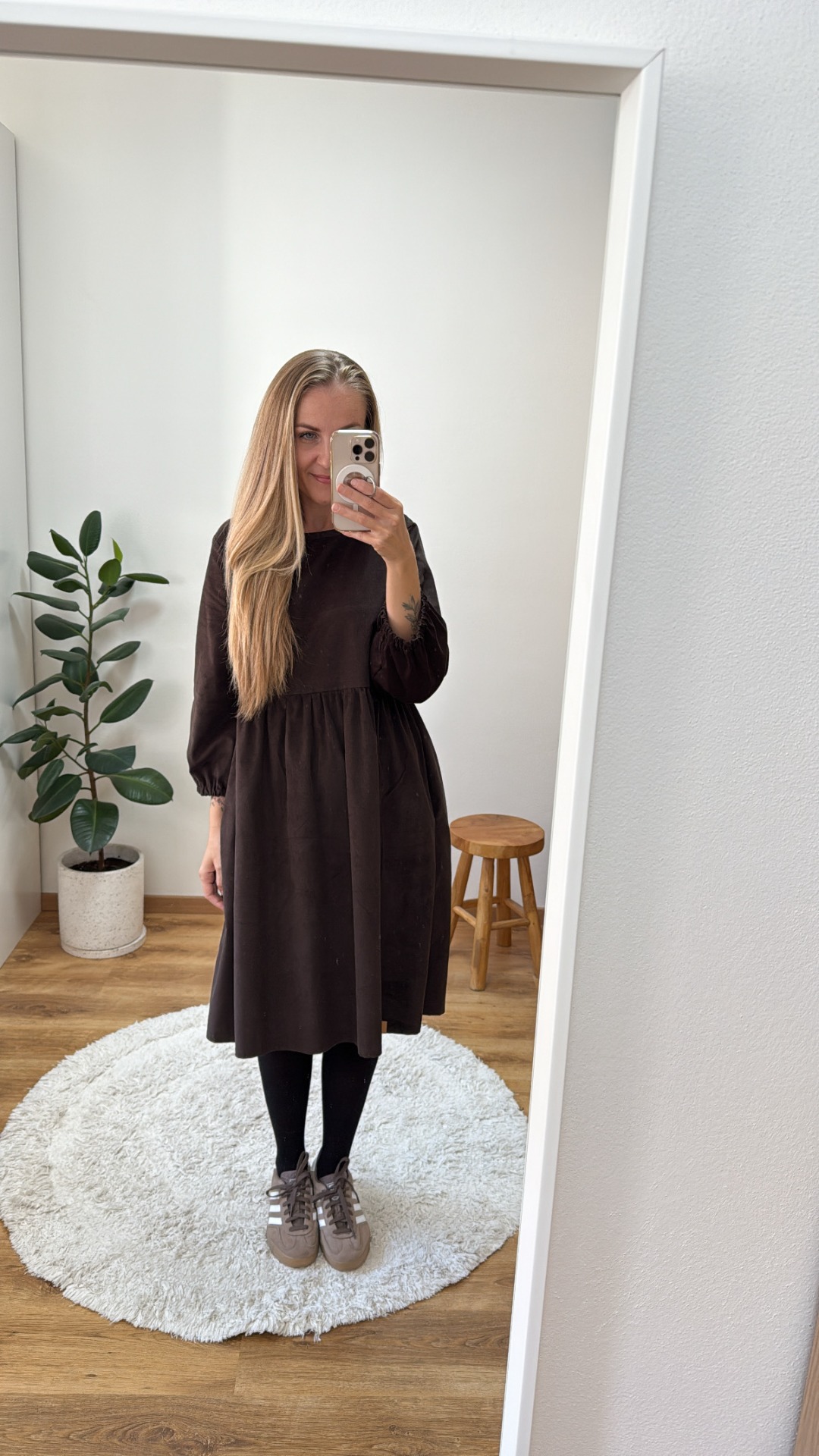 Šaty Teddy - pohodlné, volněji střižené šaty s řasením v pase a lehce nabíraným rukávem jsou univerzálním kouskem, který se skvěle kombinuje a vrství. V zimě jim sluší vlněný kabát nebo pletený svetr, na jaře si ale budou skvěle rozumět i s lehčími kousky, třeba riflovou, nebo koženou bundou.