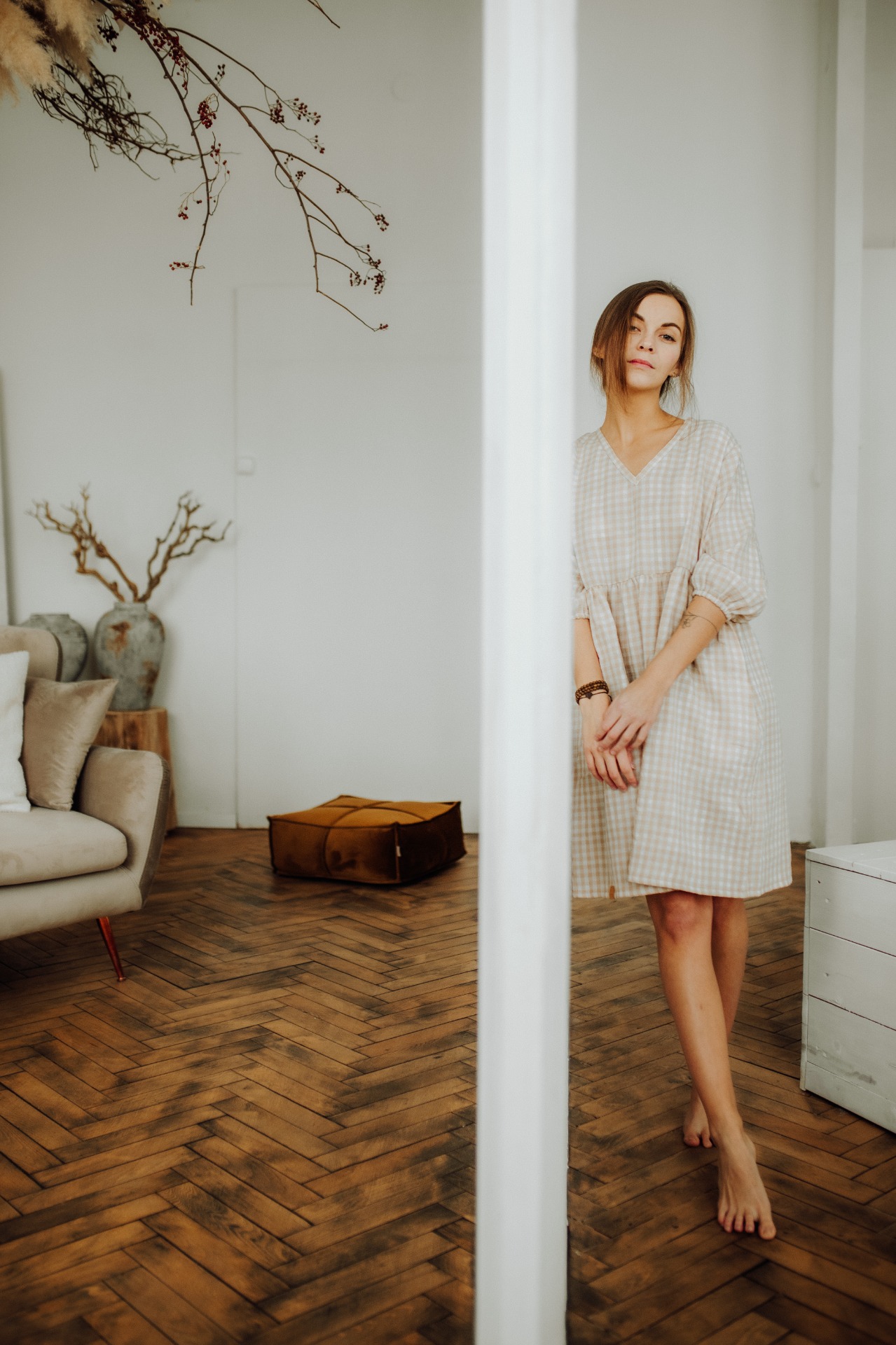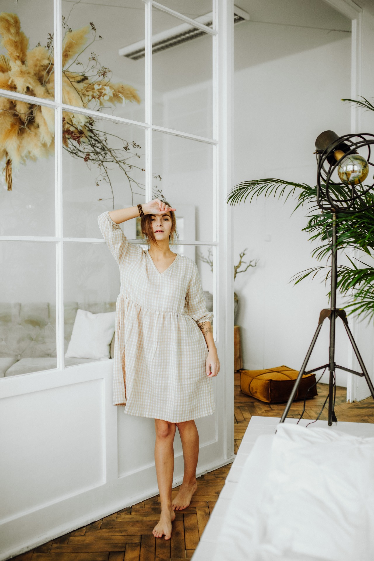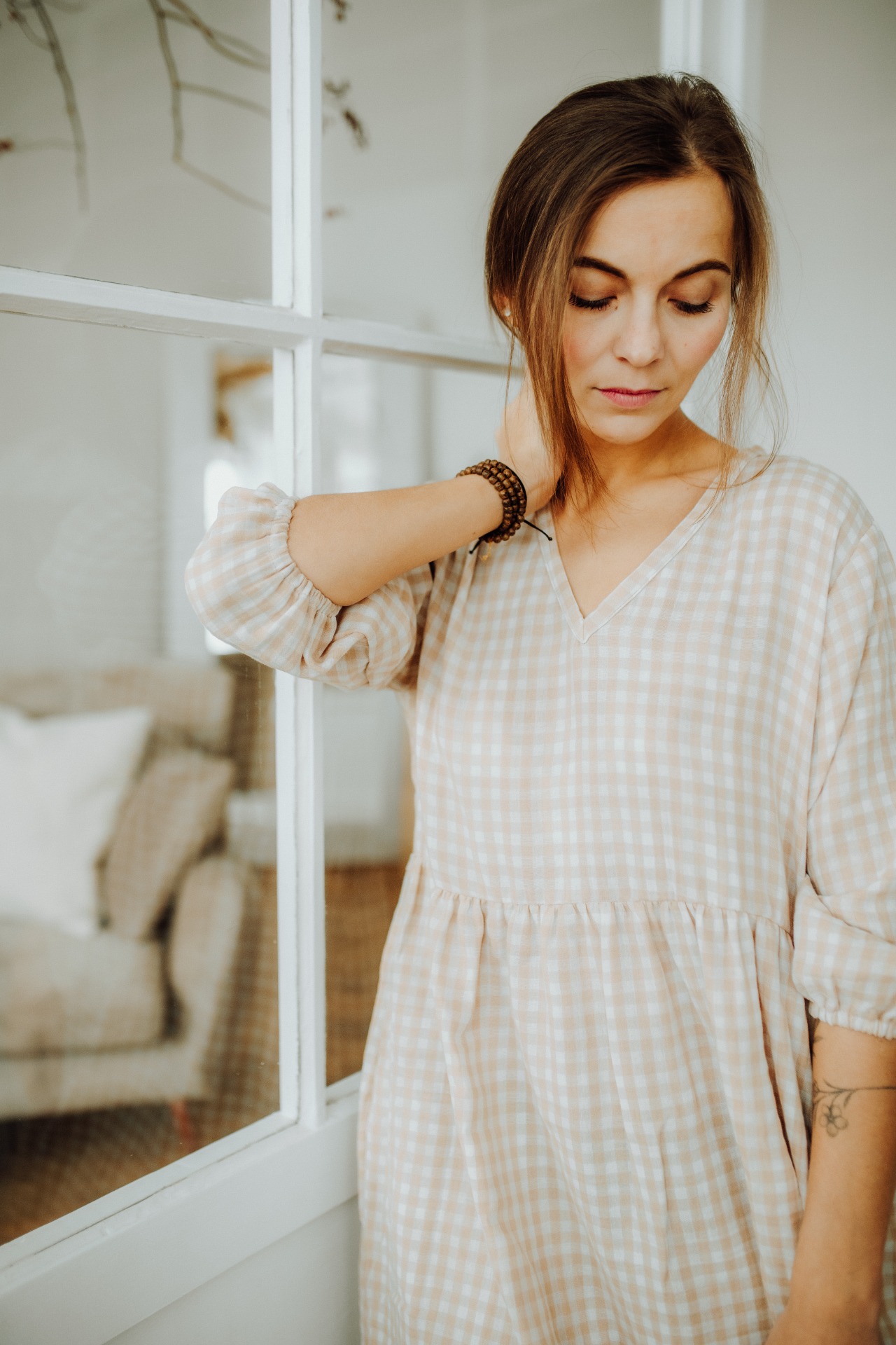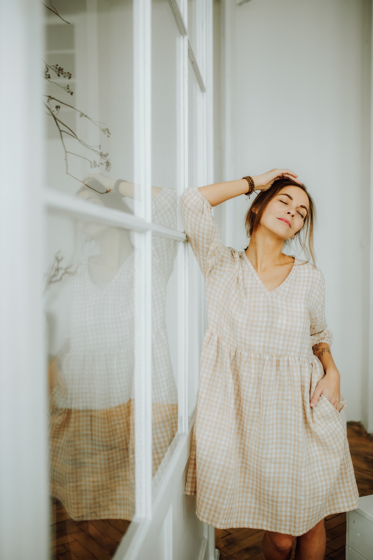 Šaty jsme tentokrát ušili v délce nad kolena a rukáv jsme ponechali o kapku prostornější, takže jej lehce vyhrnete nebo podkasáte.Jak už jste u nás u nabíraných šatů zvyklí, ve švu najdete schovanou i kapsu.