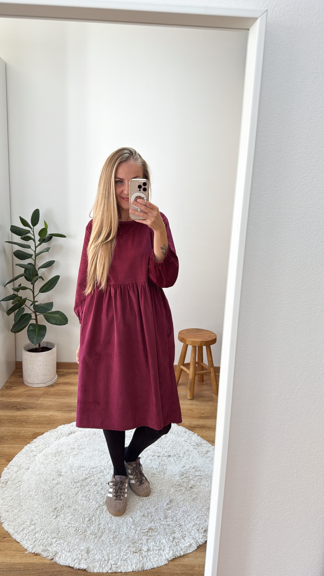 Šaty Teddy - pohodlné, volněji střižené šaty s řasením v pase a lehce nabíraným rukávem jsou univerzálním kouskem, který se skvěle kombinuje a vrství. V zimě jim sluší vlněný kabát nebo pletený svetr, na jaře si ale budou skvěle rozumět i s lehčími kousky, třeba riflovou, nebo koženou bundou.