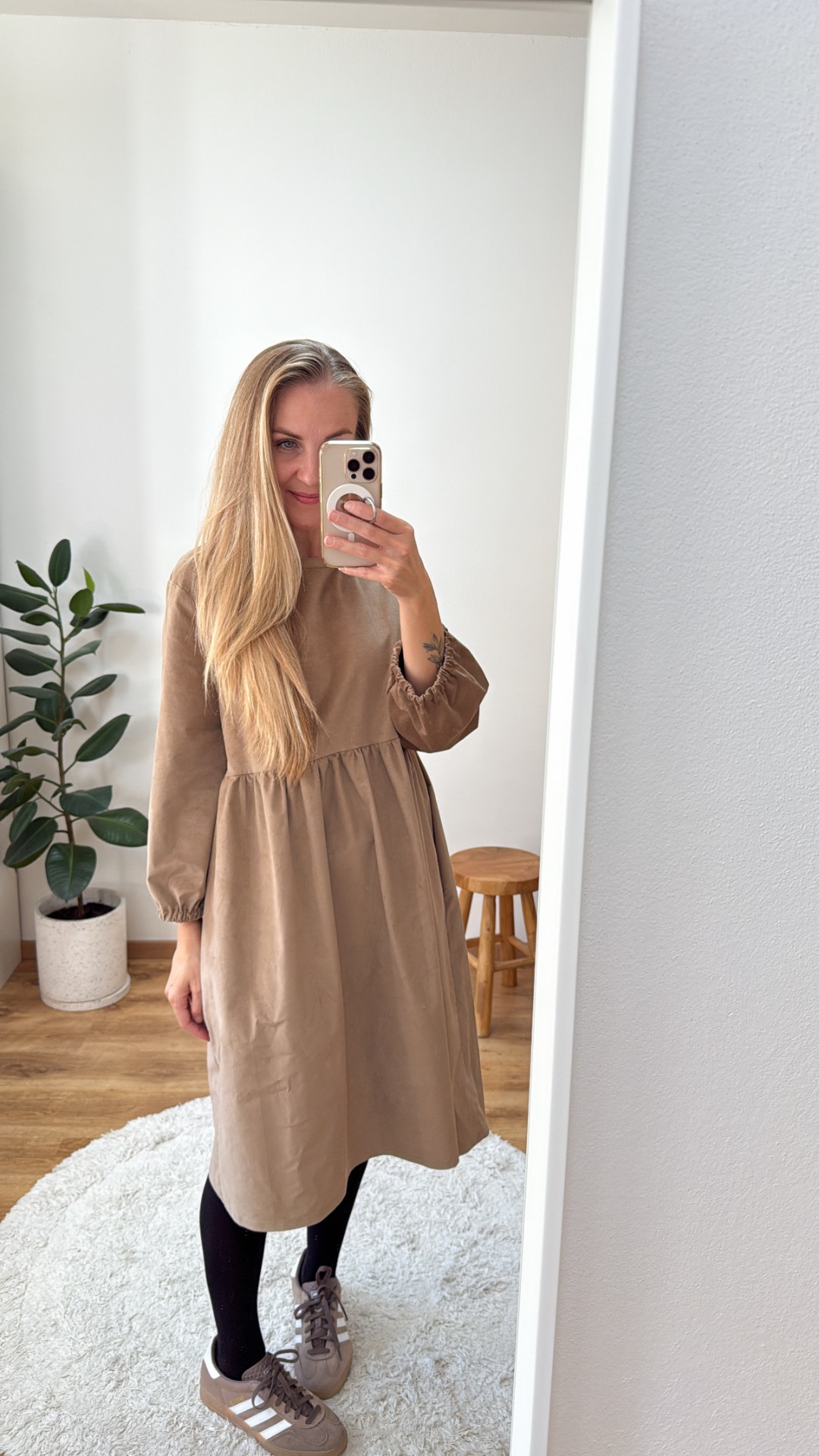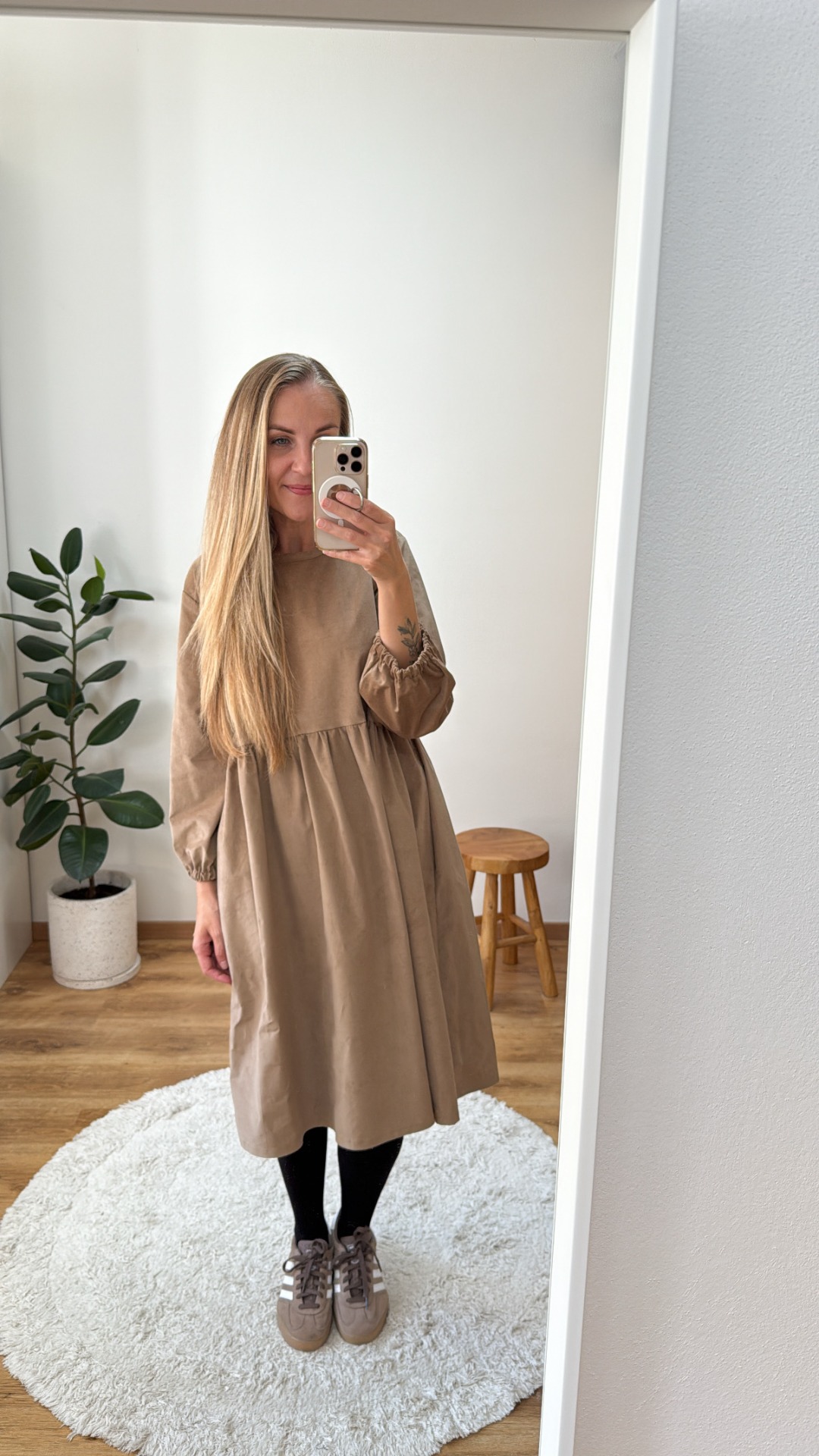 Šaty Teddy - pohodlné, volněji střižené šaty s řasením v pase a lehce nabíraným rukávem jsou univerzálním kouskem, který se skvěle kombinuje a vrství. V zimě jim sluší vlněný kabát nebo pletený svetr, na jaře si ale budou skvěle rozumět i s lehčími kousky, třeba riflovou, nebo koženou bundou.